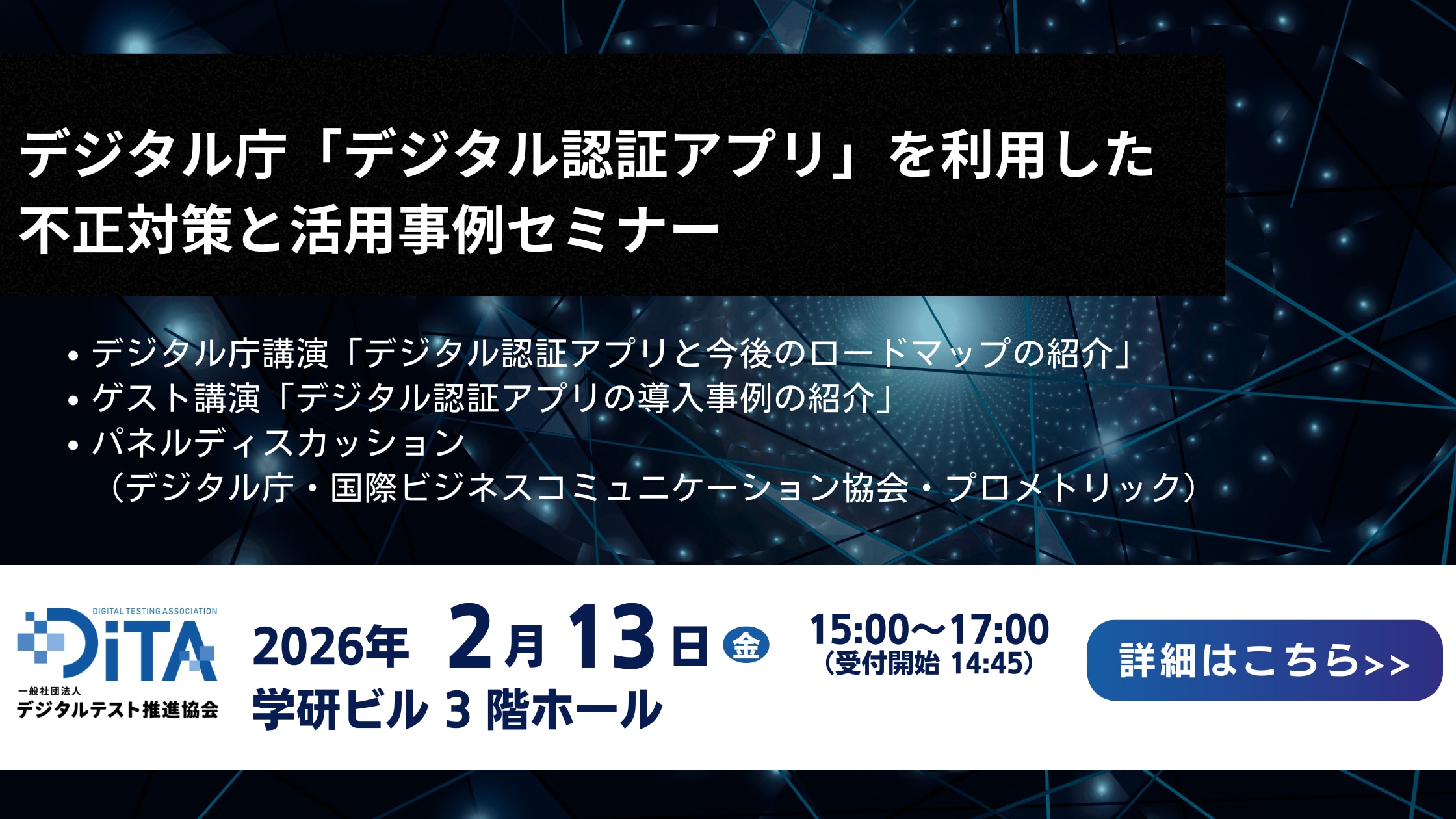 一般社団法人デジタルテスト推進協会(DiTA)では、最新のテクノロジーで試験・講習業務のデジタル化を推進することで、受験者・受講生ファーストの環境を提供し、同時に実施団体の業務効率化を実現するための普及活動を行うことを使命としています。